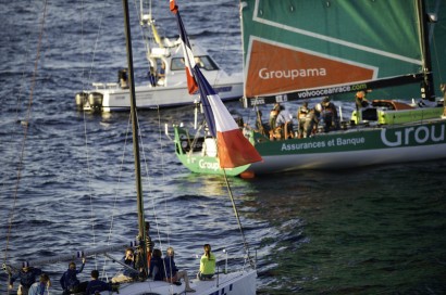En tercer lugar y siendo el último en completar la regata, llegó el Groupama, timoneado por Franck Cammas, quienes tras navegar cerca de las costas africanas en el principio de la etapa, fueron relegados a más de 300 millas del líder, llegando 2 días después a la meta