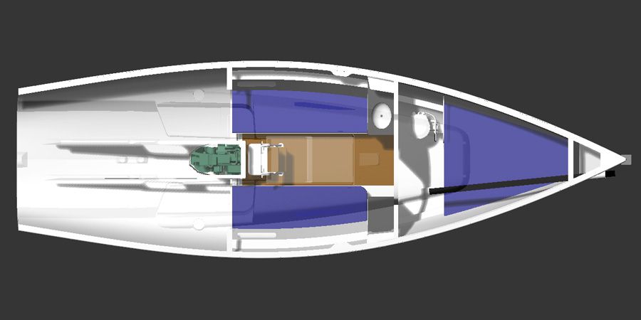Entre las características principales está la gran altura de la botavara, velas que no se sobreponen (sin genoa), un mástil de carbono con doble cruceta y con su base sobre cubierta para facilitar el armado y mantener el interior seco. Combinado con otras características de alta calidad, harán del bote rápido y balanceado en ceñida y fácil de planear en popa con vientos medios.