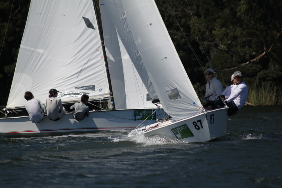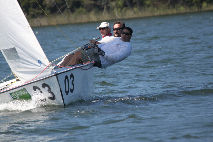 Doce embarcaciones se congregaron en la línea de partida, en una largada que se postergó de las 13 a las 14 hrs. Este hecho puntual resultó finalmente en un acierto ya que a esa hora el viento ya se había establecido y sopló constantemente con rachas que iban de 15 a 18 nudos del suroeste; con leves roladas a ambos lados de la cancha, efecto propio y característico de la Laguna Grande.