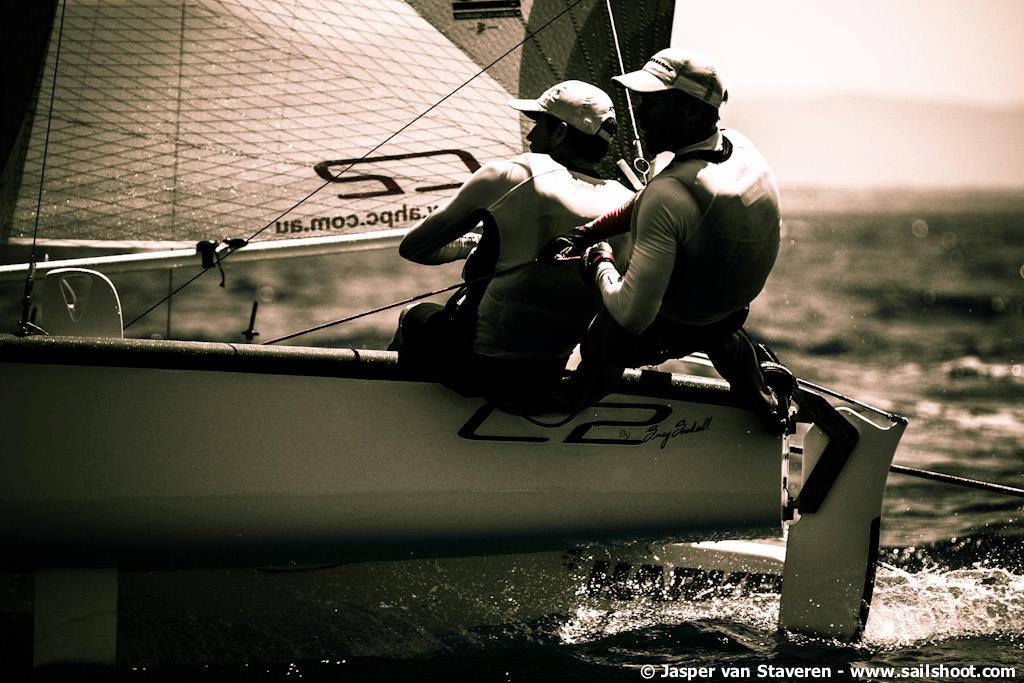 Durante la semana, se corrió el Mundial F18 en 4 flotas clasificatorias, para luego dividirlos en flota de Oro y de Plata durante los dos últimos días del campeonato. A pesar que durante la última jornada el viento fue menos estable y bastante más suave que el resto de la semana, el comité de regatas aun logró sacar tres regatas muy tácticas y emocionantes. En la flota de oro los franceses realizaron un gran trabajo táctico alejándose más aun de sus seguidores más cercanos, los británicos Styles y Mason quienes – luego del segundo descarte – terminaron con una gran diferencia de 19 puntos.