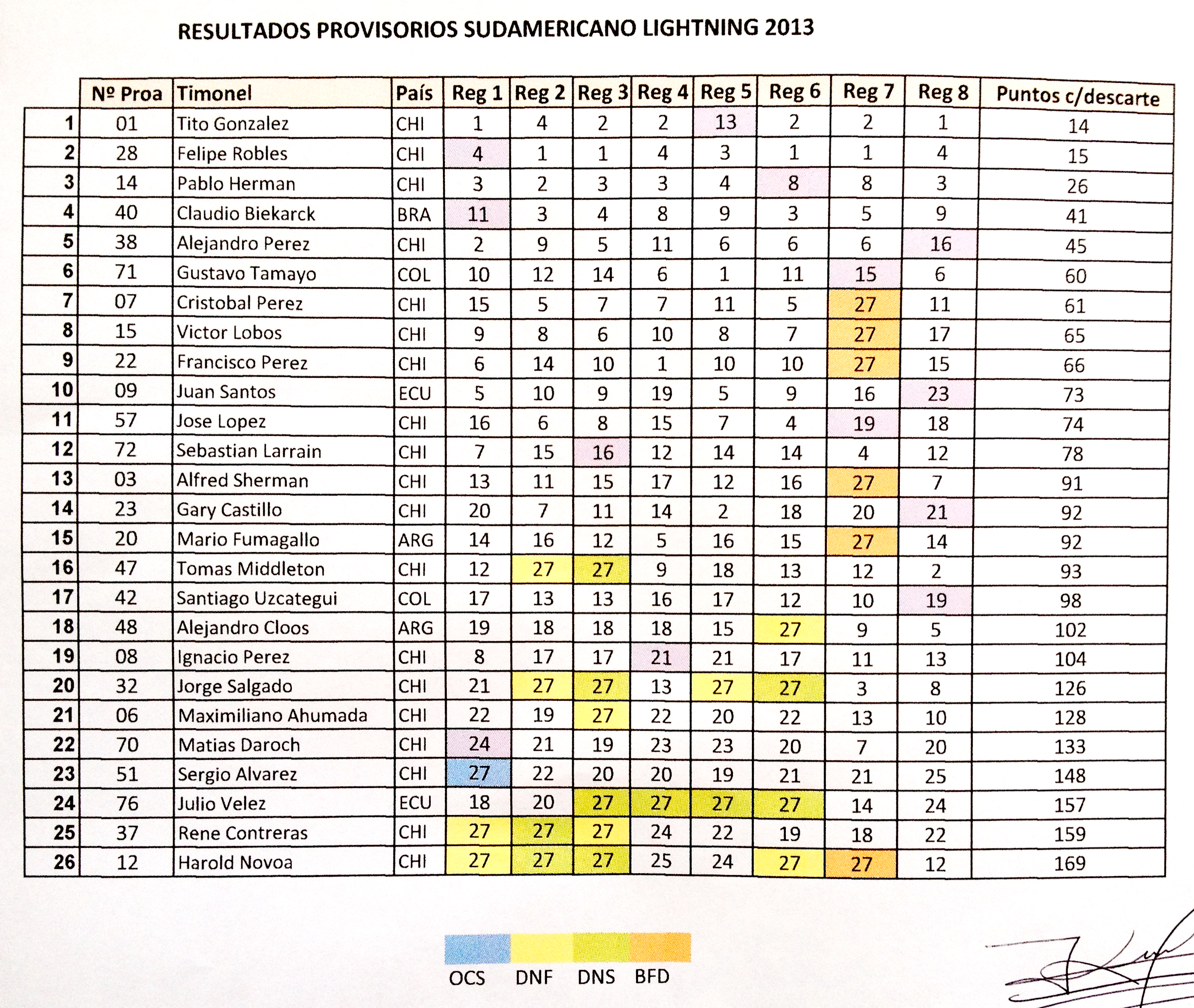 Resultados finales Sudamericano Lightning 2013 – Antofagasta