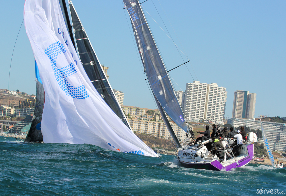 Más de 25 nudos de viento soplaron durante el 1º día del Trofeo Pedro Almirante Arrieta en Concón, provocando un choque entre el S40 Entel y el IRC Sirtecom