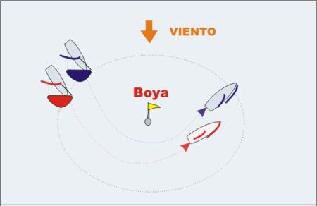 Si en la boya el viento está algo más de la derecha respecto al viento en el que actualmente navegamos nos acercaremos por el lado izquierdo. Debemos considerar el hecho como una pequeña rolada de la que aprovechábamos cuando navegamos con vientos de popa.