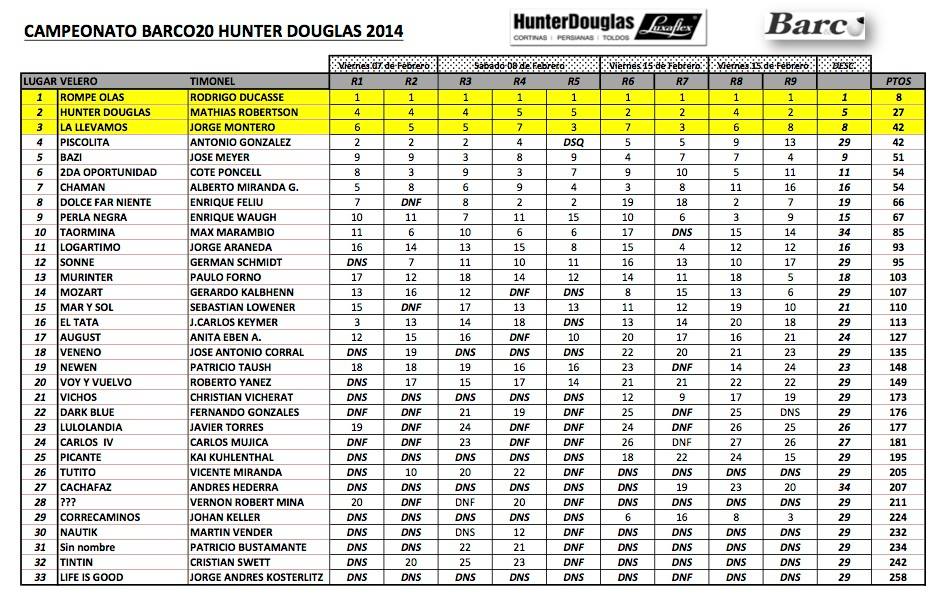 El “Rompeolas” de Rodrigo Ducasse se llevó el Campeonato Barco20 Hunter Douglas 2014, realizado en Vichuquén.