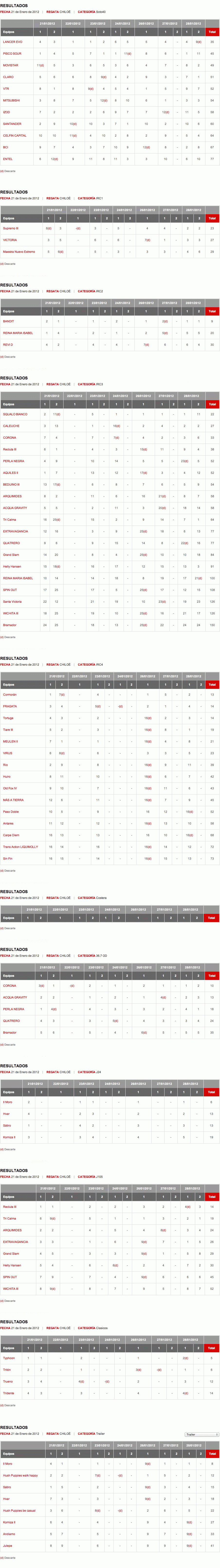 Resultados / Regata VTR Chiloé 2012